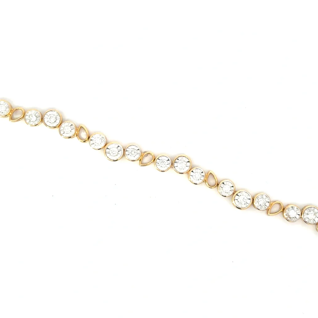 1.44cts SI1, G diamond embellishment adorns this 14kt two-tone, illusion fashion bracelet, showcasing a stunning blend of luxury and elegance.