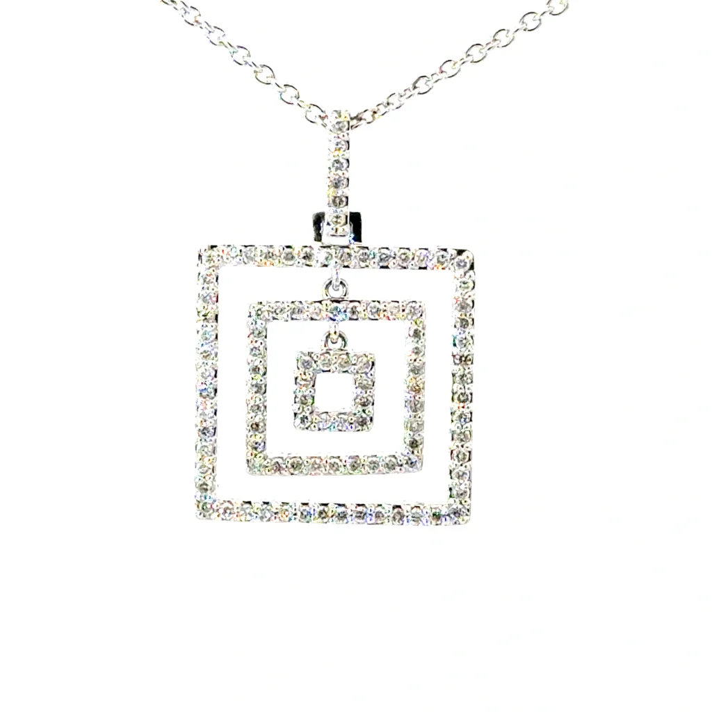 This 14KT white gold necklace is a true embodiment of elegance, featuring three square-cut diamonds that total .51 points. A timeless piece that brings a sophisticated sparkle to any attire.