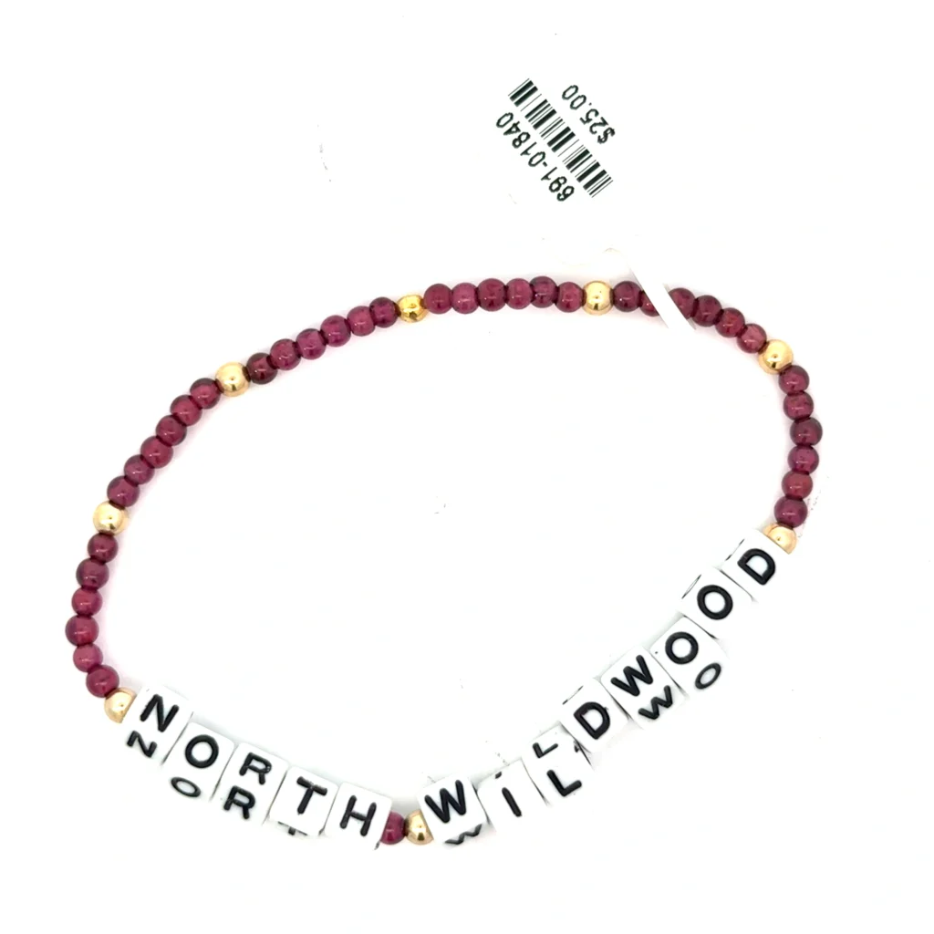 “A vibrant, gold-plated stretch bracelet featuring radiant Garnet, Amethyst beads, inspired by the stunning beauty of North Wildwood.”