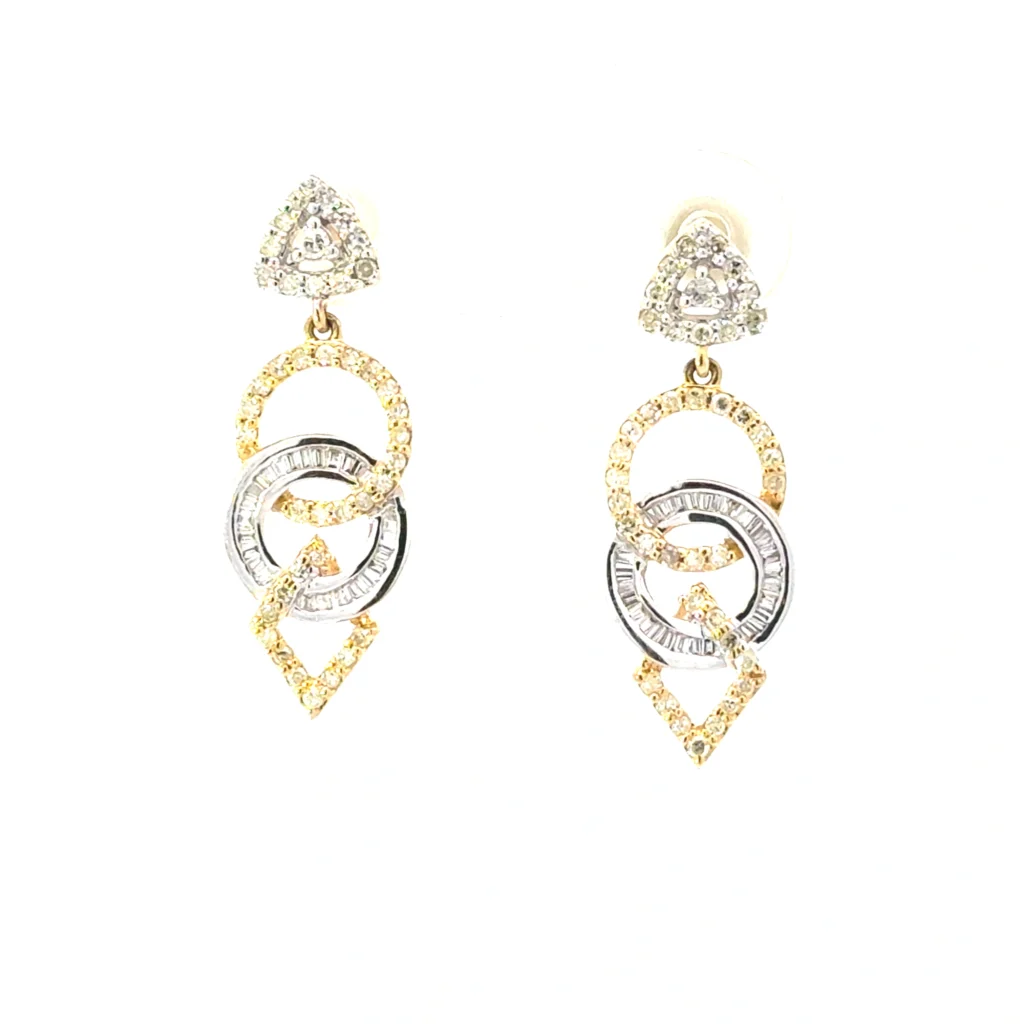HomeJewelryEarrings“Elegant 10kt two-tone diamond dangle earrings, featuring 0.52cts SI quality I/J color diamonds with secure screw backs for a fashionable statement.”