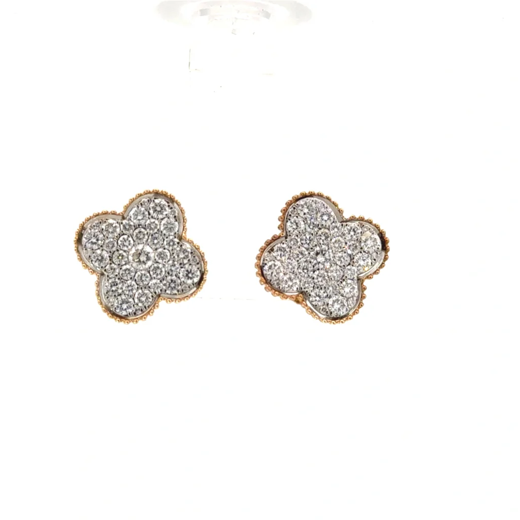 HomeJewelryEarringsStuds“Elegant 14kt two-tone earrings exquisitely adorned with 1.00cts VS2, H grade diamond pave, meticulously designed for a fashionable look.”