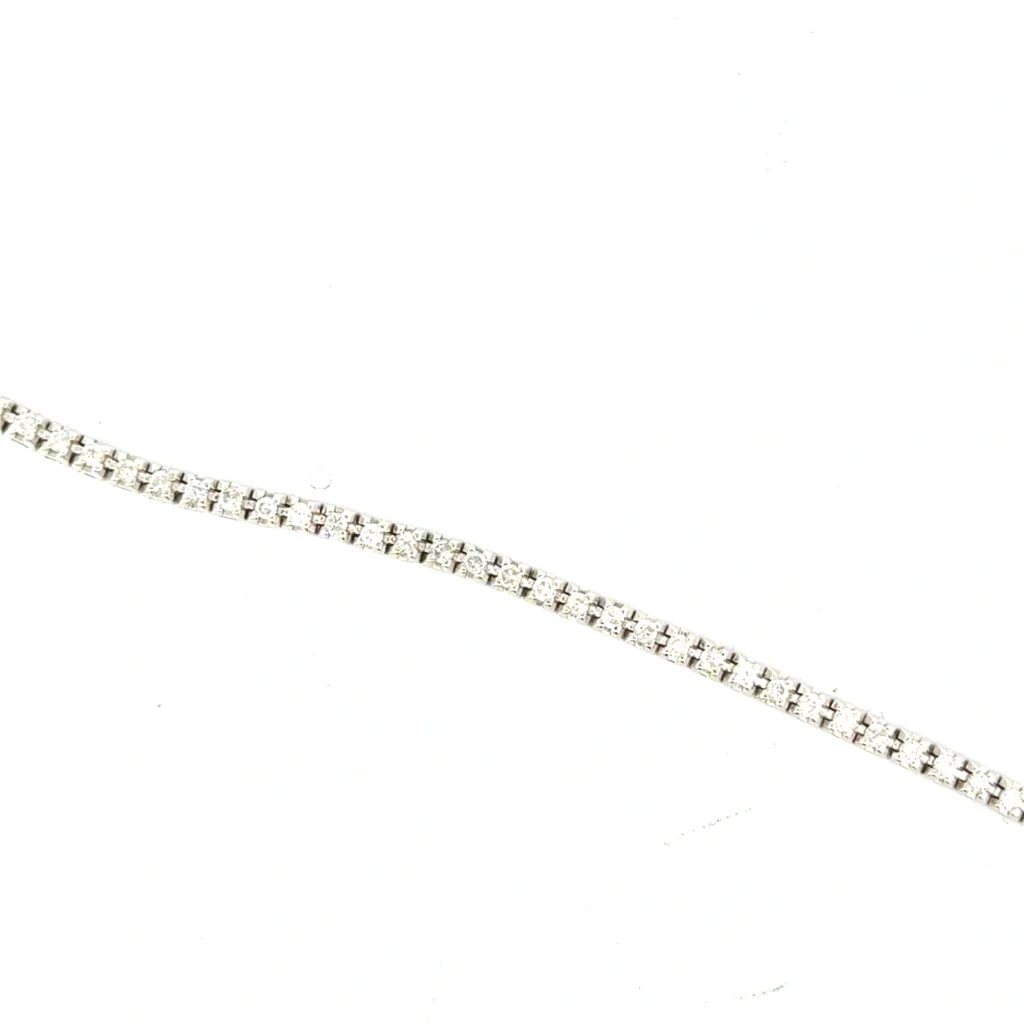 “Elegant 14kt white gold tennis bracelet, adorned with 1.00 cts SI, H color diamonds and secured by two foldover safeties.”