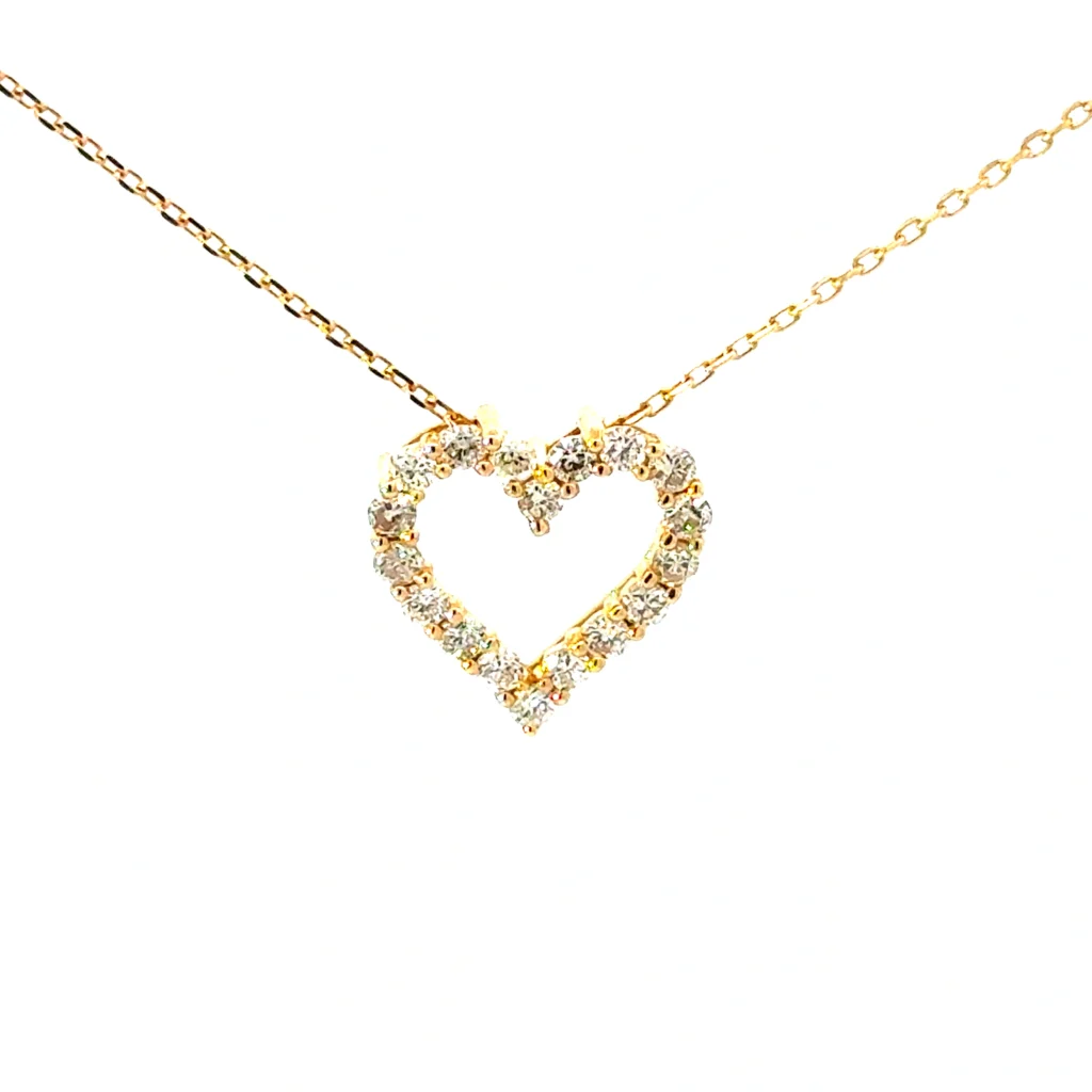 This is a stunning 14kt yellow gold pendant featuring a dazzling heart set with 0.45cts diamonds of VS2/SI1 clarity, G/H color. It gracefully suspends from an adjustable link chain for perfect positioning.