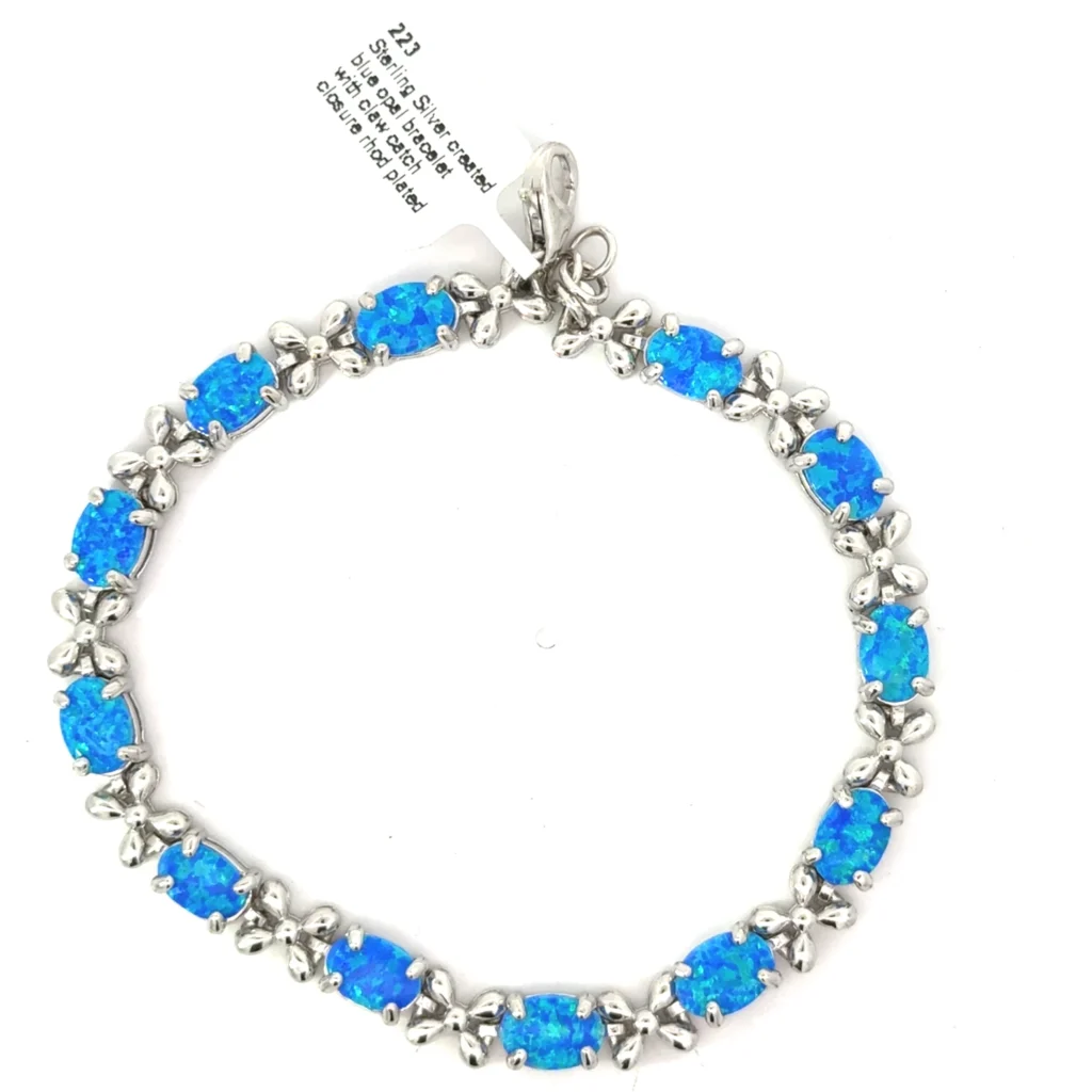 Welcome to a world where elegance meets enchantment. We present to you our elegant sterling silver bracelet featuring captivating blue opal and dazzling cubic zirconia dangles. It’s more than just a piece of jewelry; it’s a statement, an expression of style and sophistication.