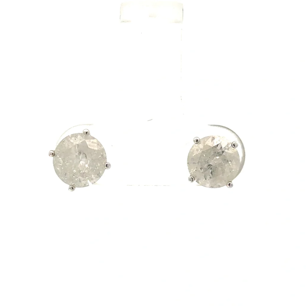 When it comes to timeless elegance and sophistication, nothing quite compares to a pair of diamond stud earrings. Our Stunning 14KT White Gold Diamond Stud Earrings with secure screw backs are the epitome of luxury and style. With a total weight of 2.50 CTS, I3 clarity, and K color, these earrings offer a dazzling sparkle that will capture everyone’s attention.