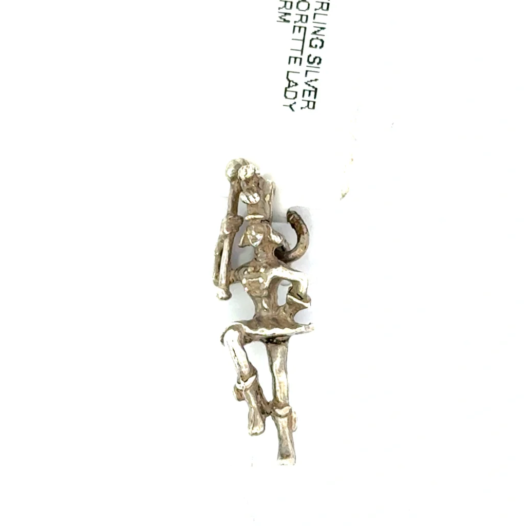 A beautifully designed sterling silver charm, showcasing a detailed majorette lady, perfect for adding elegance to any jewelry piece.