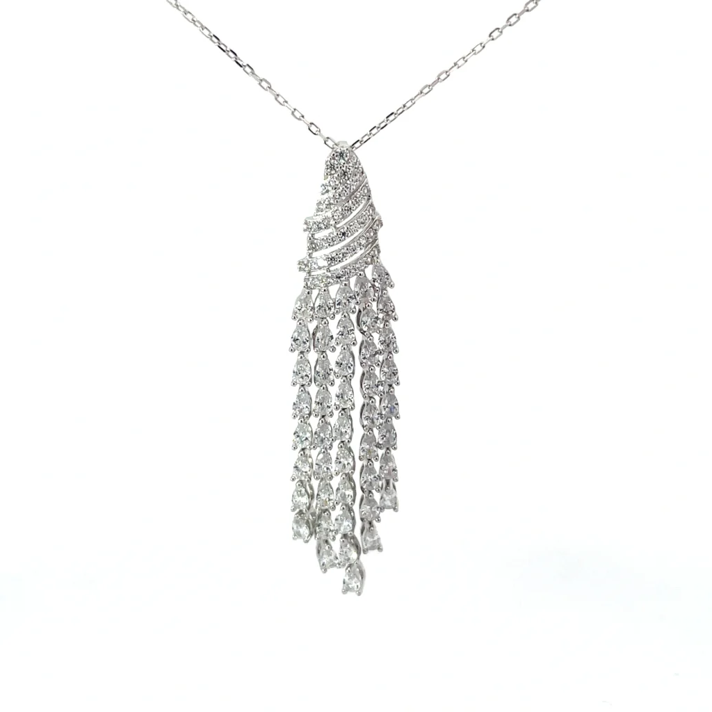 A dazzling Sterling Silver pendant, featuring a waterfall of cubic zirconia, suspended on an adjustable rhodium-plated link chain.