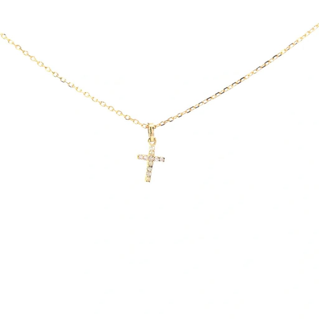 Be the first to review “A petite, sterling silver dangle pendant featuring a CZ encrusted cross, suspended on an adjustable link chain with rhodium plating.” Cancel reply