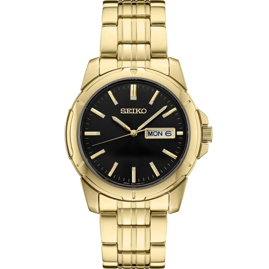 The Seiko automatic dive watch is designed to meet the highest standards of quality and craftsmanship. Its luxurious goldtone bracelet and elegant black dial make it a versatile piece that can be worn on any occasion. Moreover, the day/date display adds a practical touch, ensuring that you stay on top of your schedule with ease.
