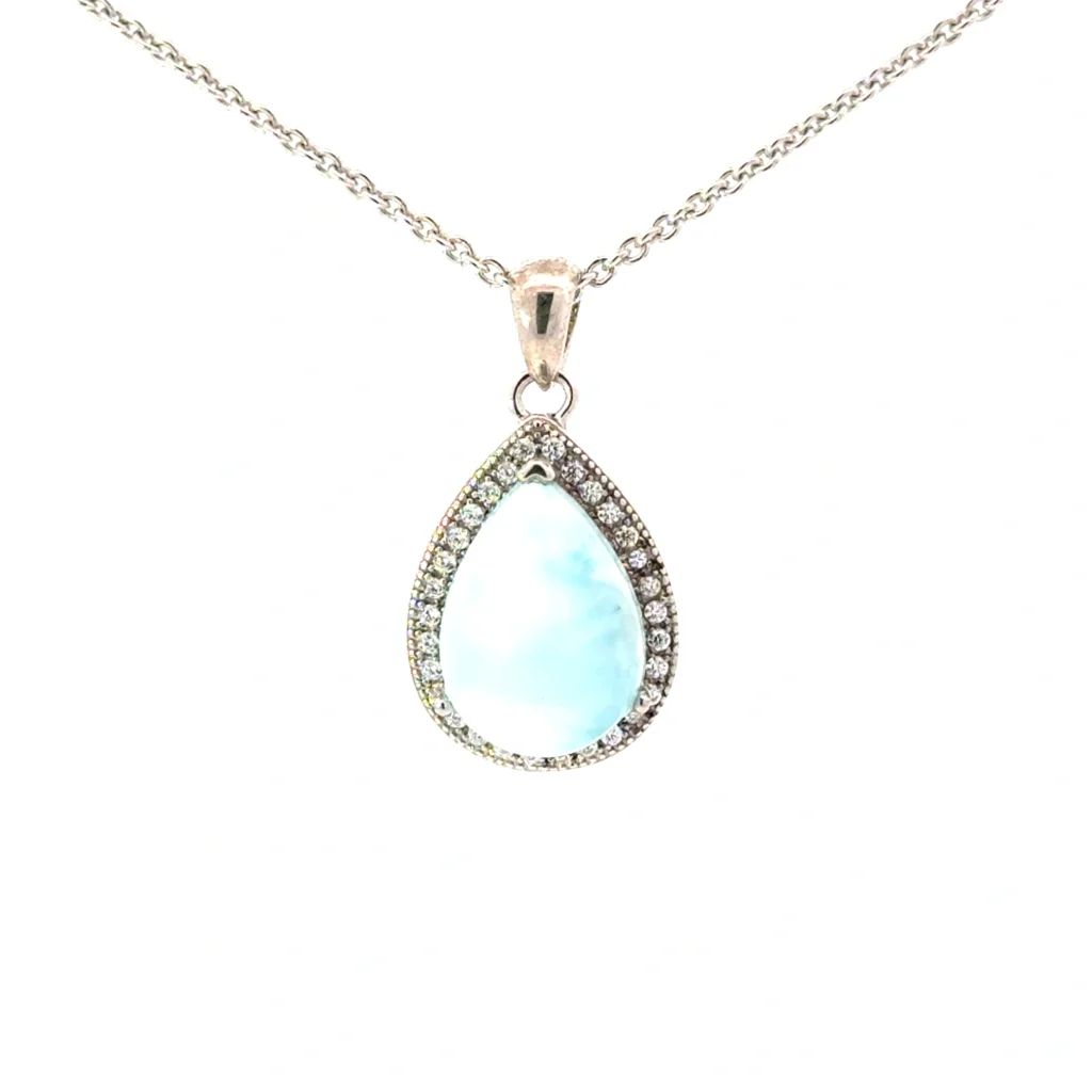 - Enhance Your Style: This pendant is designed to enhance your style effortlessly. The pear-shaped larimar gemstone adds a touch of sophistication, while the sparkling cubic zirconia provides just the right amount of shimmer.