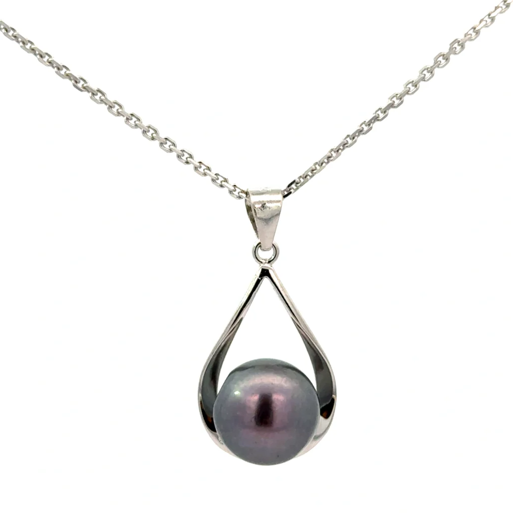 Be the first to review “An 18″ rhod plated sterling silver necklace, featuring a cut out pendant with a vibrant freshwater white pearl on a diamond cut link chain.” Cancel reply