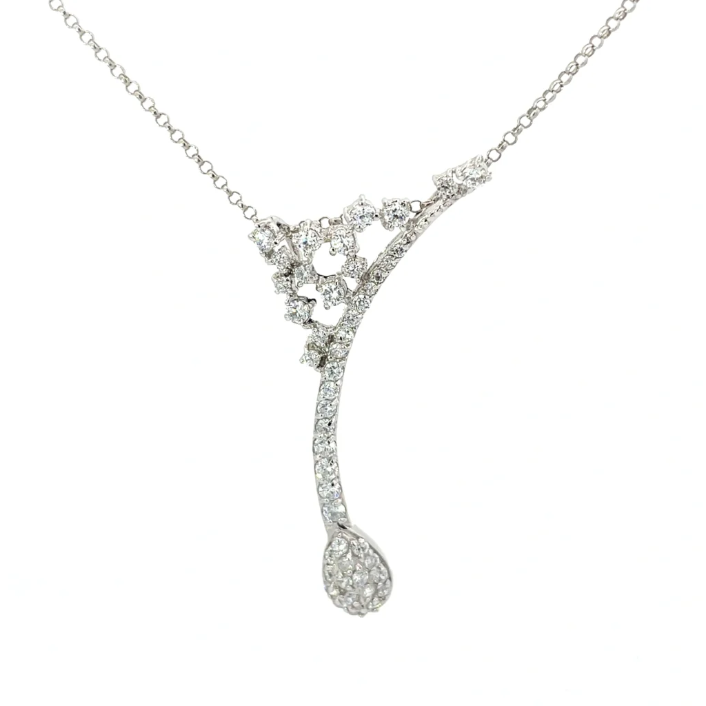 Discover the art of timeless elegance with our exquisite 18″ sterling silver fashion necklace. This carefully crafted piece is designed to complement any outfit, whether you’re attending a formal event or simply dressing up for a special occasion. The necklace features a string of shimmering cubic zirconia stones that catch the light beautifully, offering the brilliance and allure reminiscent of real diamonds.