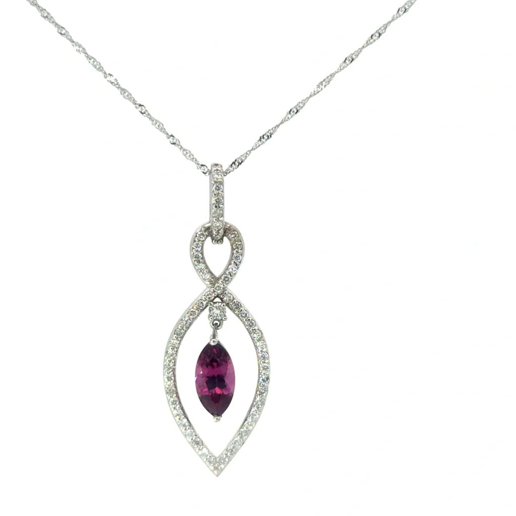 This exquisite 14k white gold pendant is a masterpiece that brings together the enchanting beauty of diamonds with the vibrant allure of Swiss blue topaz. Designed to captivate any onlooker, the piece features a stunning 8mm AA checkerboard cut, enhancing the gem’s brilliance and depth. Surrounding the focal point is a delicate array of sparkling diamonds, totaling .60pts, adding an elegant sparkle that is sure to catch the light from every angle. With a luxurious 49pt 1.2mm app balanced further by a .35pt wnx, this pendant celebrates the flawless blend of classic and contemporary aesthetics. Perfect for special occasions or to elevate everyday elegance, this diamond blue pendant serves as a timeless addition to your jewelry collection. Embrace its unique beauty, a true testament to life’s precious moments, and experience the union of exceptional craftsmanship and breathtaking design.