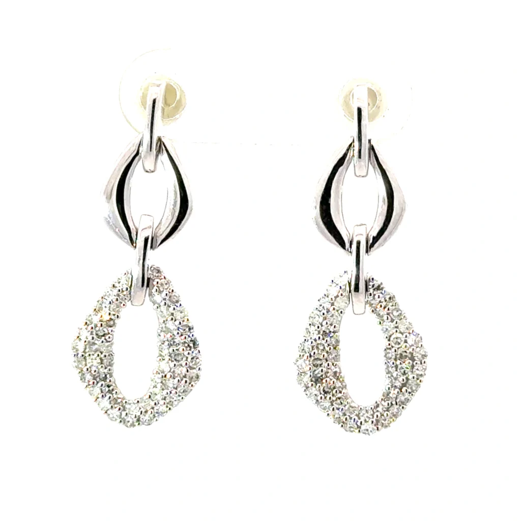 Discover the epitome of elegance and sophistication with our exquisite diamond earrings, crafted from luxurious 14kt white gold. These stunning earrings feature near-colorless H grade diamonds, ranging between VS2 and SI1 clarity, providing unmatched brilliance and sparkle. With a total diamond weight of 0.75 carats, these dangle earrings are designed to make a statement.