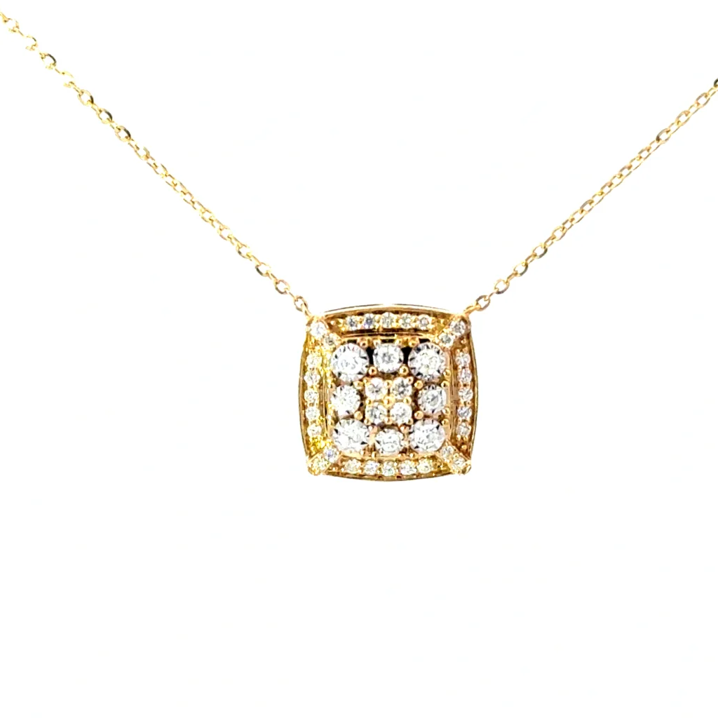HomeJewelryNecklacesDiamondElegant 14kt yellow gold necklace with 0.29cts SI clarity, near colorless H color diamonds on an adjustable diamond-cut chain.