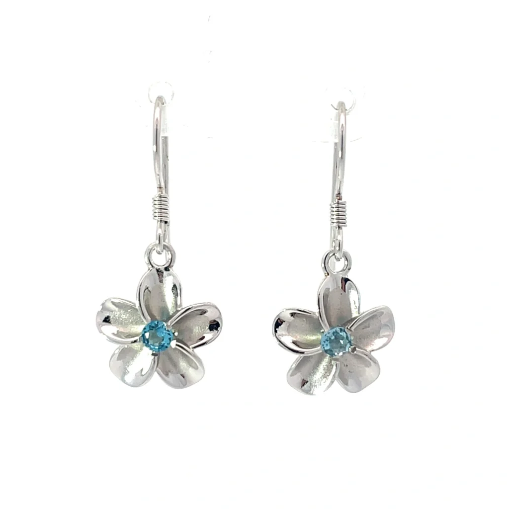 HomeJewelryEarringsElegant sterling silver dangle earrings featuring vibrant blue topaz gems and delicate flower designs, ensuring a sophisticated touch of sparkle.