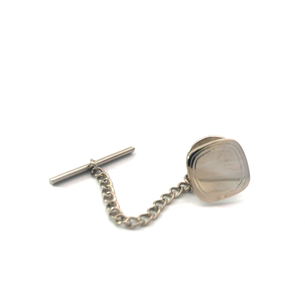 Elegant sterling silver tie tac featuring a shiny cushion shape design, adds a sophisticated touch to any professional attire.