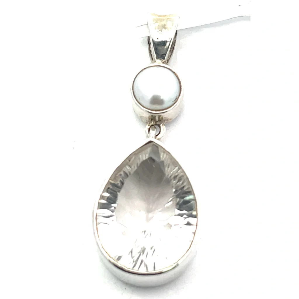 Handcrafted Sterling Silver pendant from Bali featuring a fantasy-cut white quartz adorned with an exquisite pearl, radiating elegance and sophistication.