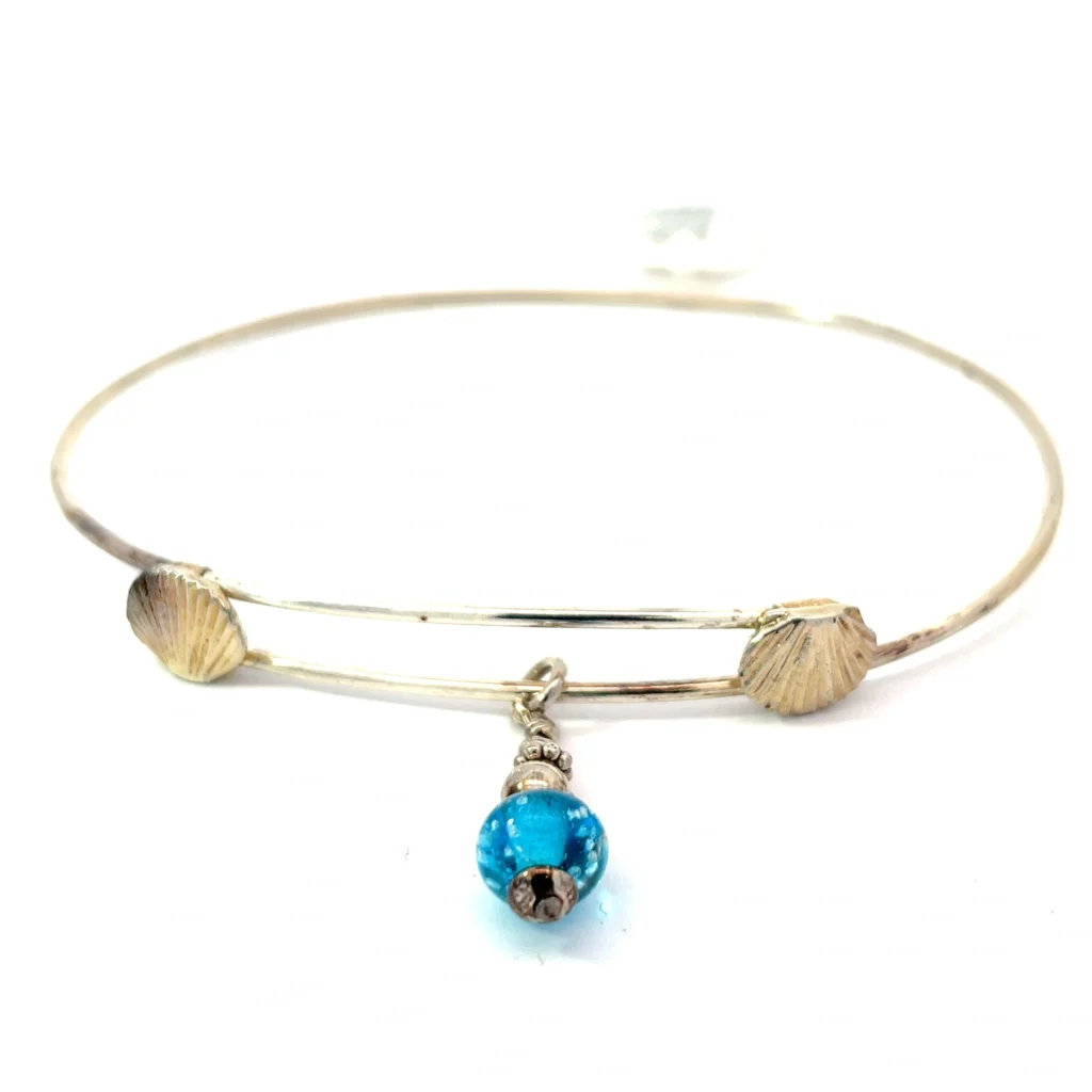 Ss expandable bracelet: scallop shells and handblown glass with sand from wildwood beaches intertwined inside adorn this stylish, adjustable bracelet.