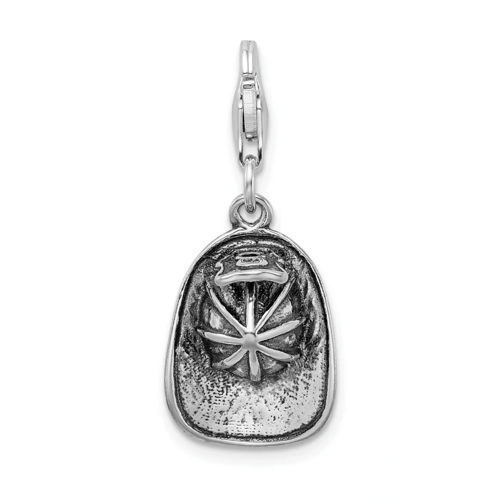 This is a 3-D charm shaped like a fireman’s hat, crafted with exquisite detail from genuine sterling silver for durability.