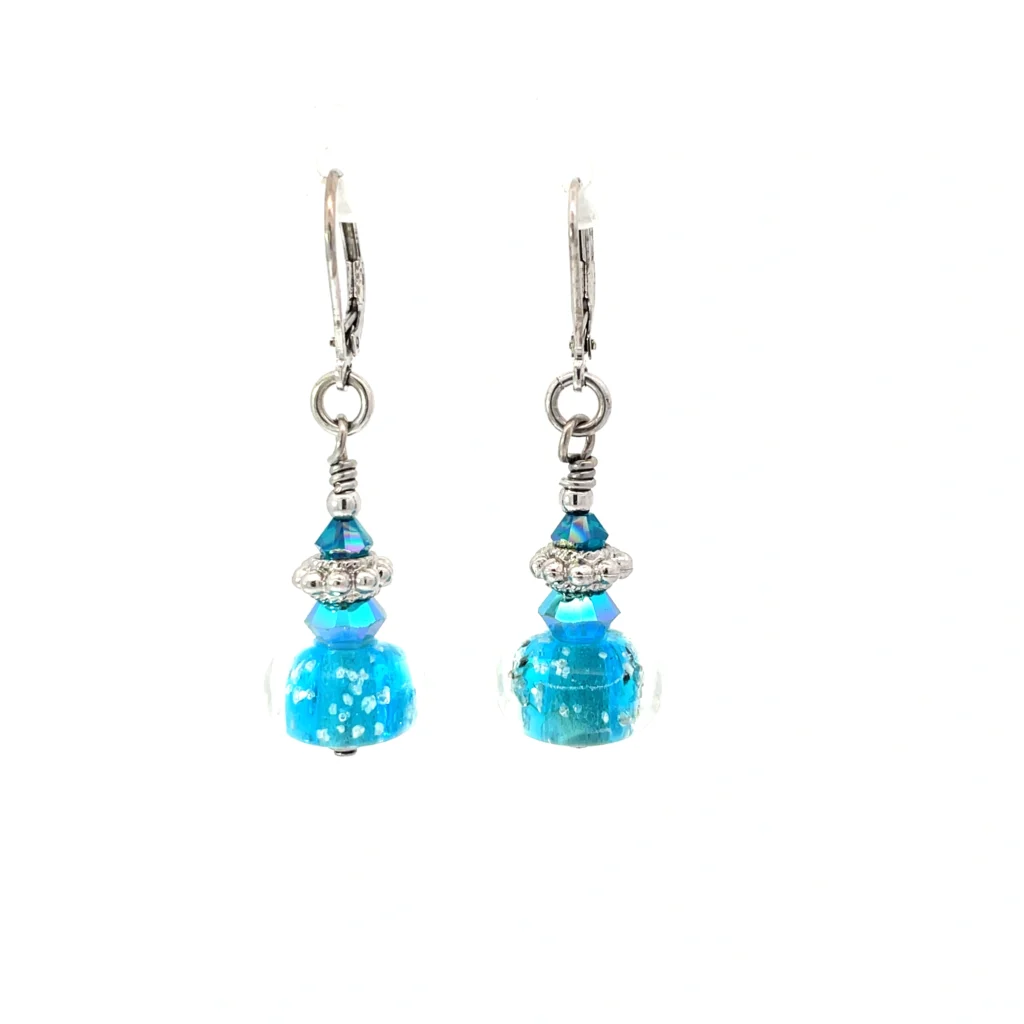 Vibrant, hand-blown murano glass with sand from wildwood beaches intertwined inside. captivating sterling silver capri dangle earrings.